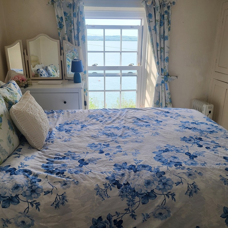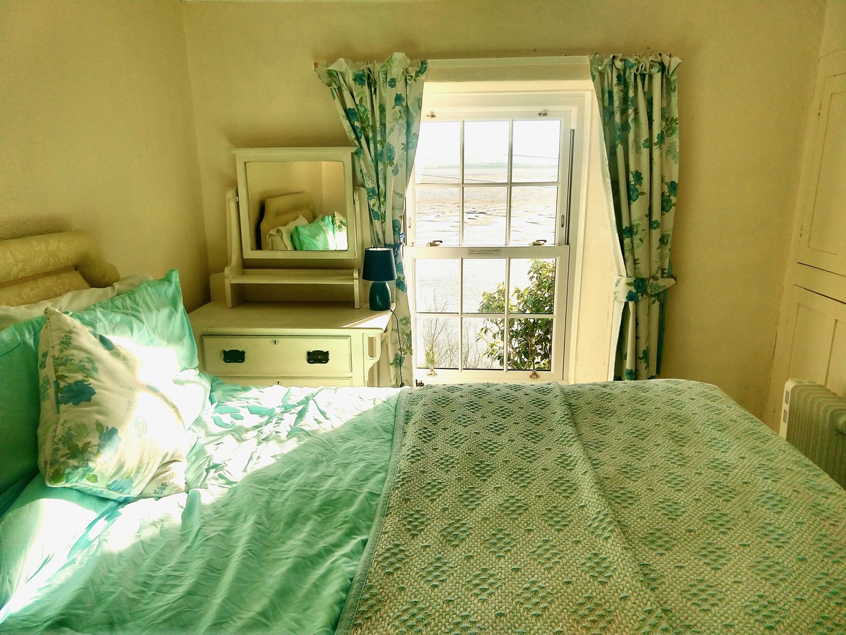 Double bedroom has double bed, chest of drawers with vanity mirror, wardrobe with full length mirror. You can sit by the window and watch the world go by. Look at the birds, watch the sea and the ever-shifting sands. The full moon can be seen from here and it's magnificent.